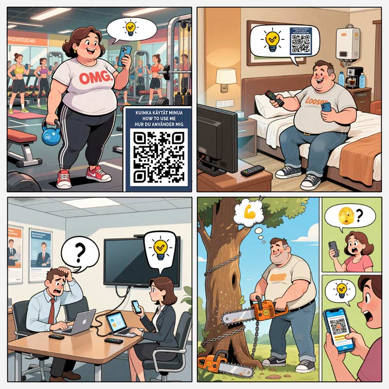 Reduce costs, save staff time, and give new customers a pleasant first experience. With QR codes and our multilingual 1-2-3 βHow to use meβ guides, youβll get better reviews and see which equipment customers find hardest to use.
