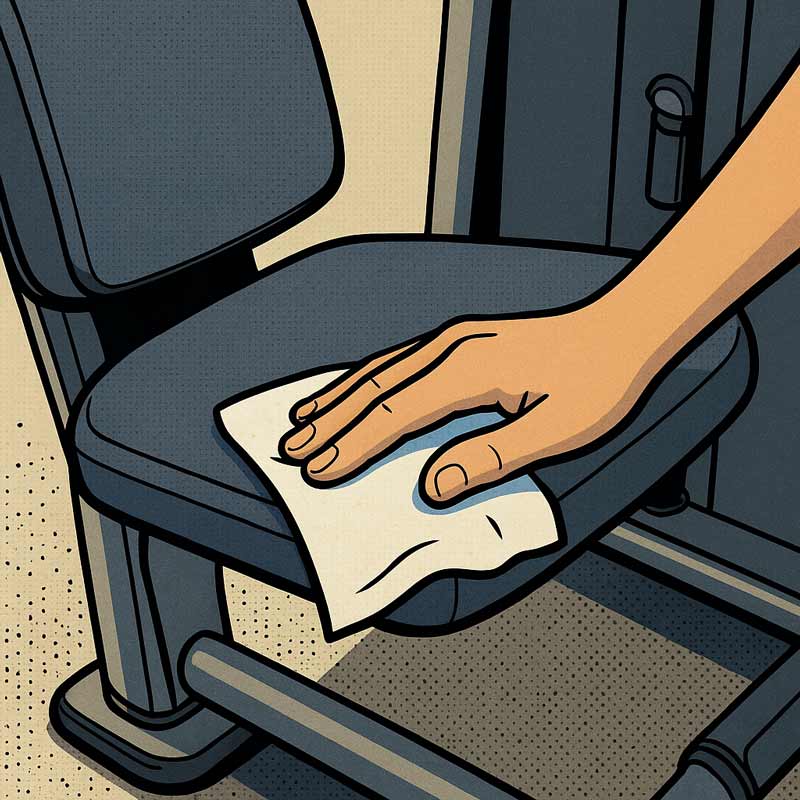 1. Wipe seat, backrest and handles with the provided disinfectant cloth.